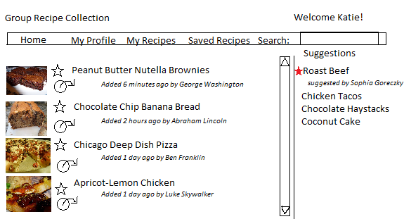 The Group Recipe Collection was a PHP/Heroku Facebook application developed in a college course with one other student. It began with a simple idea — being able to have a food blog on Facebook, where most people spend their time, so that people don't have to take the extra step of figuring out how to create a blog on Blogger, WordPress, etc. I designed and coded the majority of the key functions, but the images were created by and the database was hooked up and hosted by my partner. The original prototype was designed by me. I wrote a final description of the application, which you can see among the files above. Within that paper is a URL to the Facebook application on Facebook. As of 7/8/2012 it is functioning, but we are not advertising it for public use because of the cost it would take for my partner to host the database containing the recipe information.