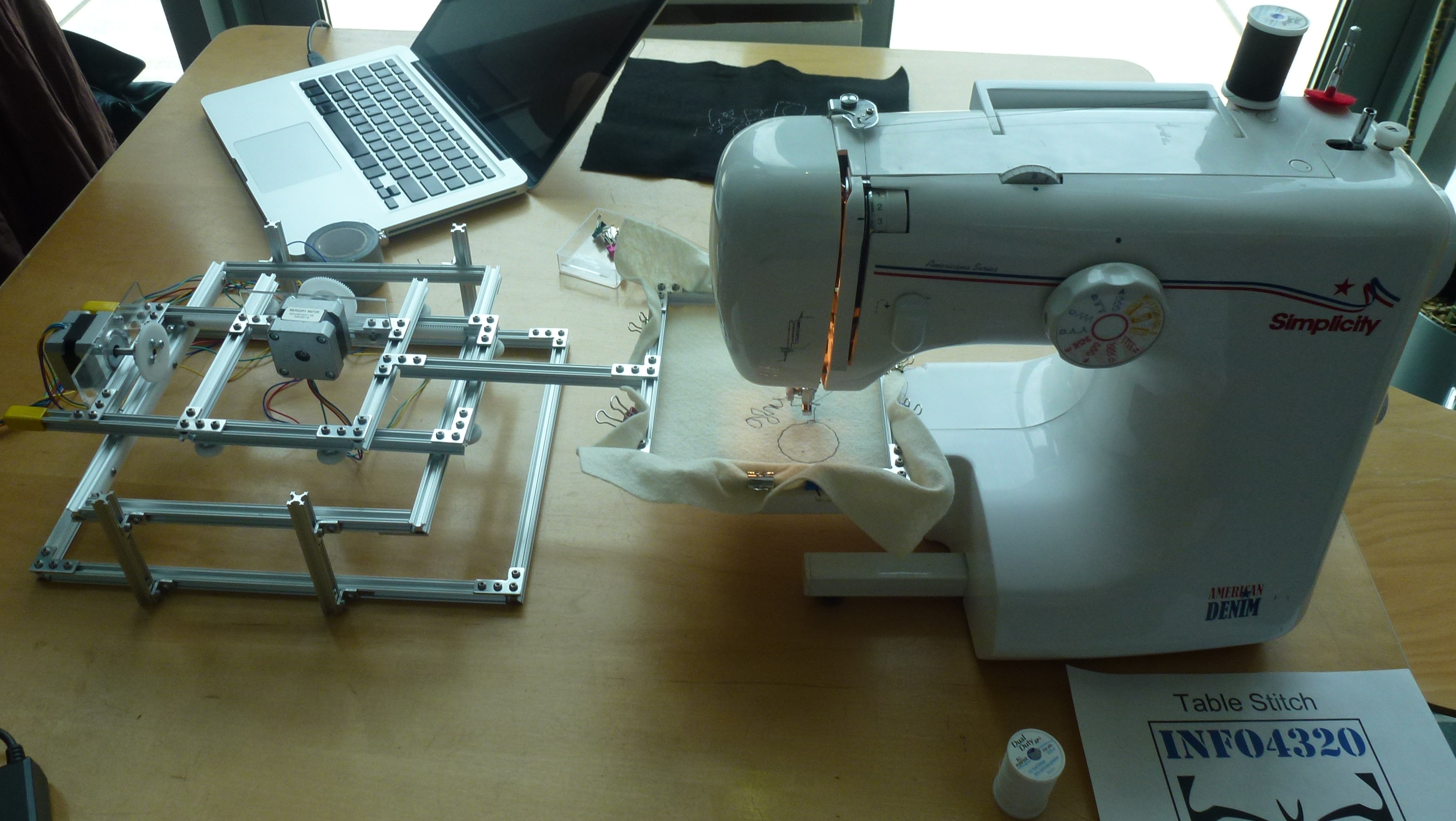 One thing that college helped me excel at is learning to work (and love to work) in a group. The Table Stitch was a piece of hardware my group created for a Rapid Prototyping class at Cornell University. One of the group members and I thought of the idea: to create something you could combine with a sewing machine to stitch shapes — a cheaper embroidery machine. We built it out of MicroRAX and motors, programming in Arduino to make the stepper motors move the MicroRAX in specified directions. There are three layers of MicroRAX in our final design: a base layer, a vertical-moving layer, and a horizontal-moving layer. You can see the working final prototype on my group member's YouTube channel. Our original idea was to have pre-programmed shapes such as a circle, triangle, and square, but eventually got a Processing UI so that the user could create his or her own designs that the machine would stitch. You can see our paper on it included with the files above.